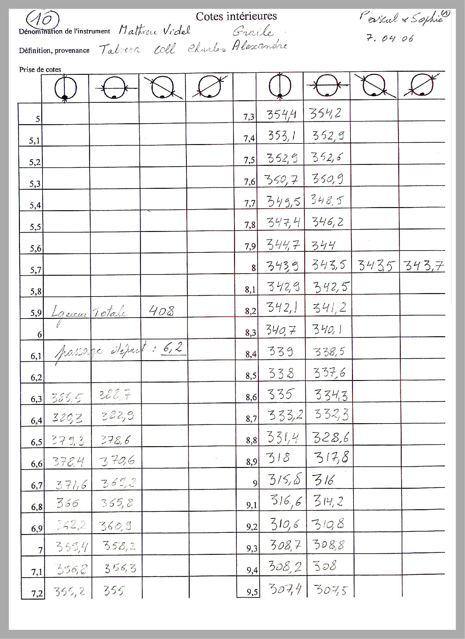 Résumé : Relevé des cotes intérieures du graile.